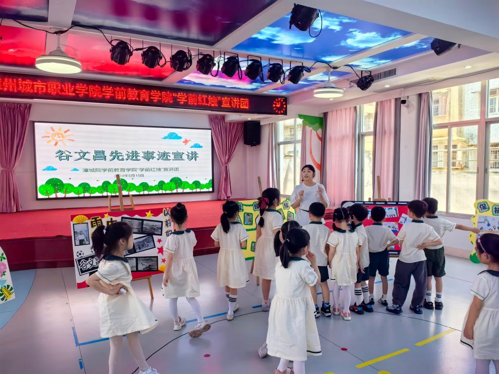 为扎实推进党纪学习教育,持续推进“学前红烛、育人先锋”党建品牌建设,2024年5月15日,漳州城市职业学院学前教育学院“学前红烛”宣讲团赴漳州市机关幼儿园开展谷文昌先进事迹宣讲活动。