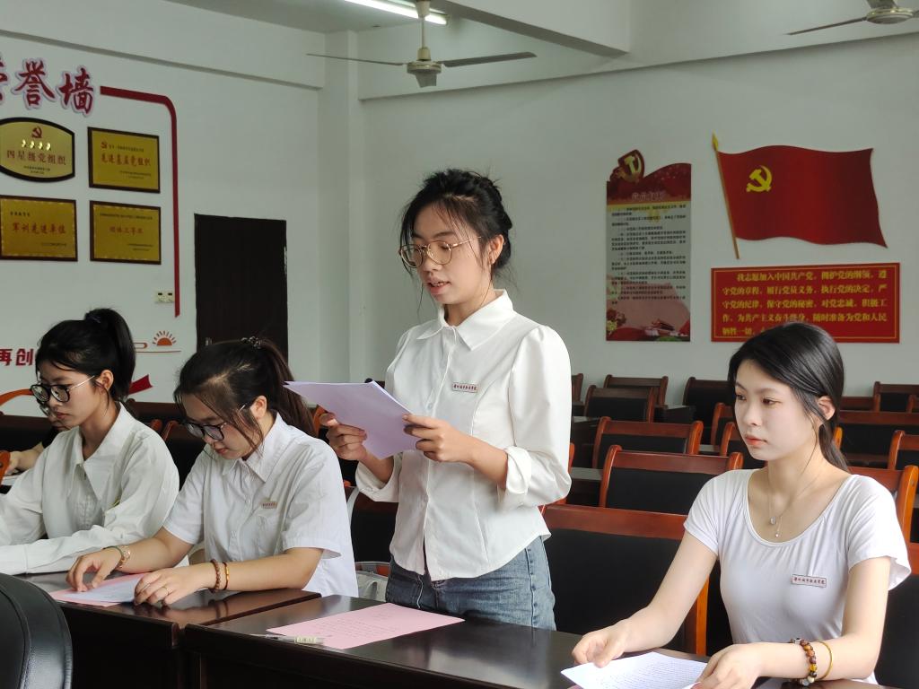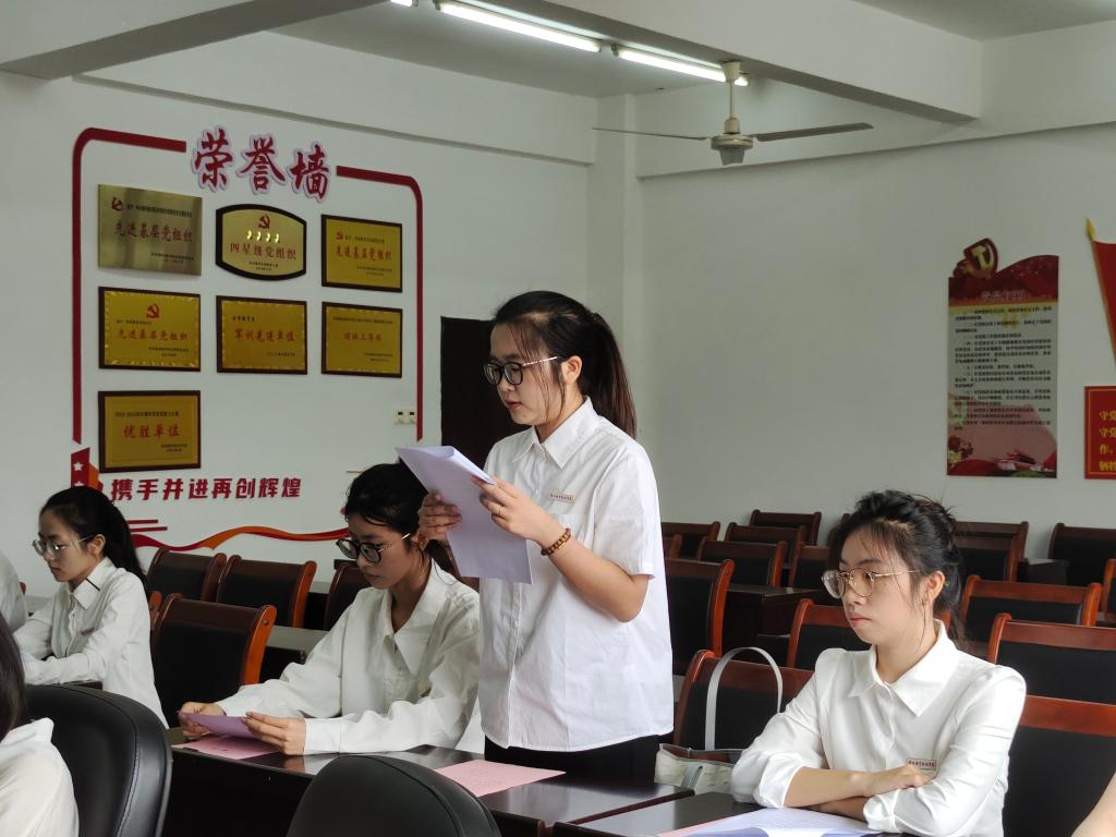 8名发展对象在大会上宣读了自己的《入党志愿书》,汇报自己对党的认识、入党动机、本人履历,以及需要向党组织说明的问题。每一位发展对象宣读《入党志愿书》后,其入党介绍人分别详细介绍了该发展对象的培养考察过程,对其各方面情况进行综合评价,并对其是否入党、本人是否同意其加入党组织表明意见。在充分讨论的基础上,与会正式党员进行无记名投票表决,党支部书记郑美江同志代表支部宣读大会接收预备党员的决议,支部大会一致同意接收刘月华等8名发展对象加入中国共产党。