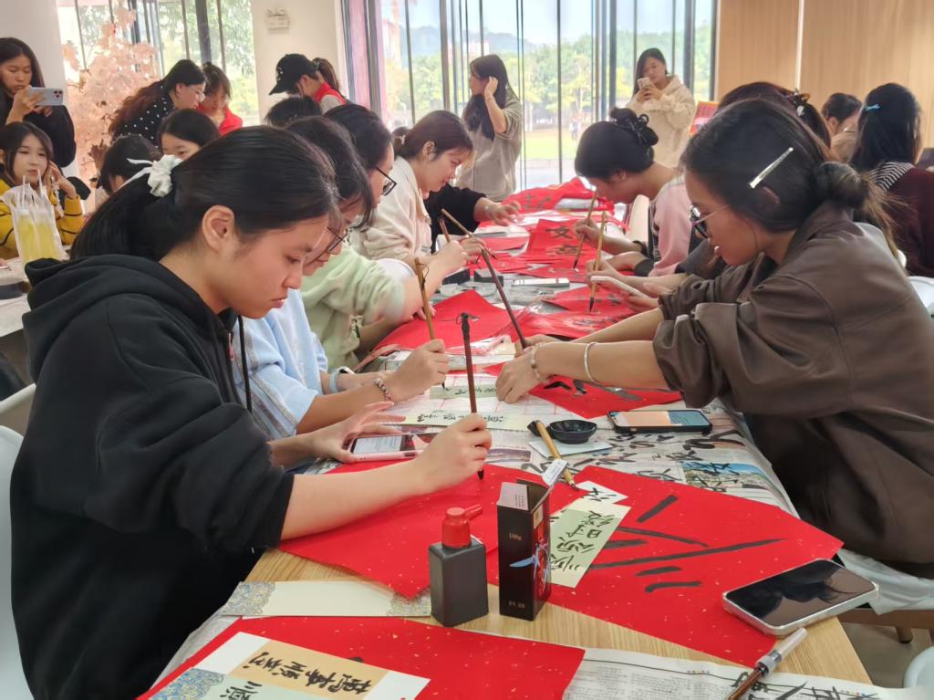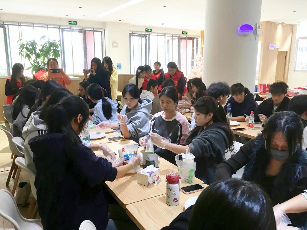 当日下午,思齐餐厅内笑语盈盈,“冬至民俗暖心志愿活动”温情启幕。学院团委书记朱艺蓉老师带领“学前红烛”青年志愿服务队,与各族同学围桌而坐,分工协作揉面、调色、塑形,共同制作创意十足的汤圆。大家发挥巧思,不仅搓出色彩斑斓的五彩汤圆,更精心捏制出寓意“柿柿如意”的柿子形状汤圆,指尖流转间满是对生活的美好期许。同学们在动手实践中体验劳动乐趣,在互帮互助中拉近心的距离。一旁的“集体祝福区”翰墨飘香,同学们挥毫泼墨,将对集体的深情、对新年的期许化作一张张“福”字、一副副对联、一枚枚书签……活动尾声,师生们手持成果一同合影,定格下各族学子同心团圆的珍贵瞬间。