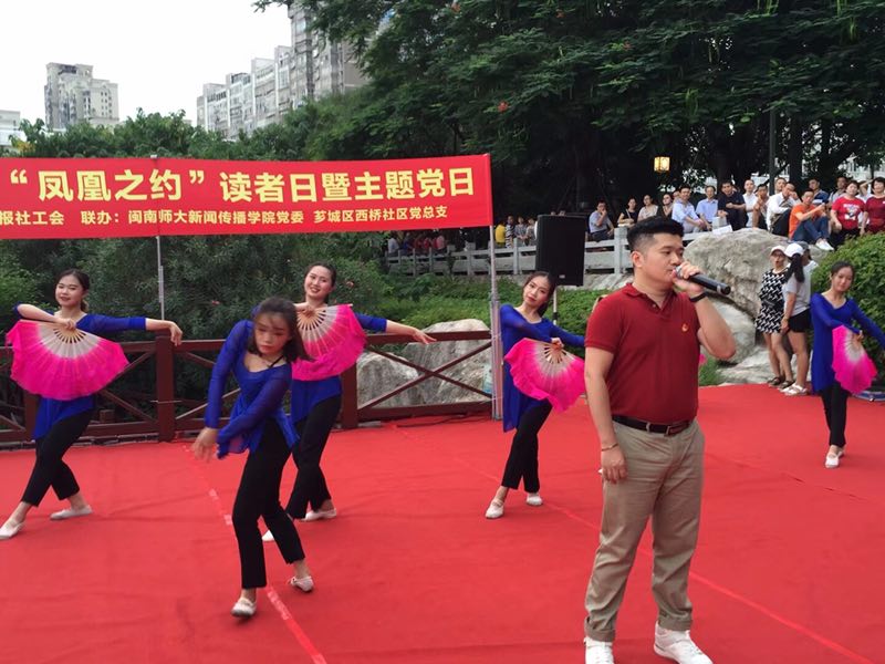 活动当天,节目精彩纷呈,热闹非凡。学前教育系庄毅楠老师带领我系八名学生携手闽南日报社第一党支部为市民们献上了精彩的歌伴舞节目《绿叶对根的情意》。伴随着闽南日报社饶超毅主任饱含深情的歌声,我系师生舞姿优雅,翩翩起舞,为现场的观众献上了精彩的视听享受,吸引了众多市民驻足欣赏,鼓掌称赞。