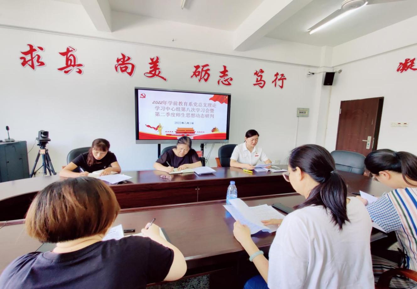 2022年7月1日上午,学前教育系在系会议室召开学前教育系党总支理论学习中心组第八次学习会暨第二季度师生思想动态分析研判会。学前教育系党总支理论学习中心组成员参会,蔡艺娟主持会议。