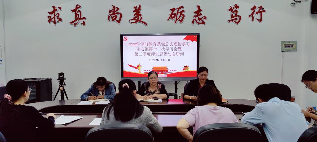 2022年11月2日下午,学前教育系在系会议室召开2022年党总支理论学习中心组第十一次学习会暨第三季度师生思想动态研判会。学前教育系党总支理论学习中心组成员参会,蔡艺娟同志主持会议。